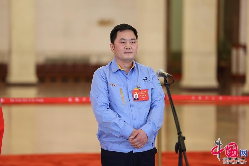10月22日,二十大“黨代表通道”第二場采訪活動在人民大會堂舉辦。圖為中國兵器西北工業(yè)集團(tuán)研究院試制分廠鉗工高級技師張新停。中國網(wǎng)記者 董寧 攝